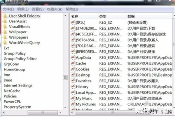 2、在打开的注册表编辑器窗口中,大家依次打开路径位置为:HKEY_CURRENT-USER\Software\Microsoft\Windows\CurrentVersion\Explorer\UserShell Folders文件夹,然后用鼠标双击打开My Picture选项;