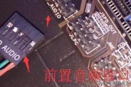 4、HD AUDIO前置音频接口是对应接入主板上AUDIO标识上,这个不插,机箱前面耳机插孔是没有声音的。