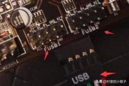 3、再来插入前置USB接口和前置音频接口,这些接口也是有防呆设计的,因此如果错了是无法插入的,首先先插USB接口,USB标识的接口对应主板上的USB标识接口上。
