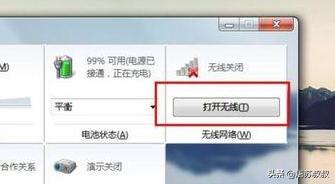 2、找到“Windows移动中心”,鼠标点击打开,若自己的无线网络被关闭,则点击“打开无线”按钮,便成功启用了无线网络功能,您的无线网络列表就可以显示;