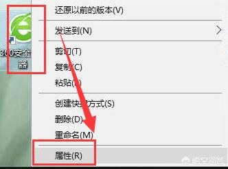 1、对着桌面上的360浏览器点击鼠标右键,选择属性点击。