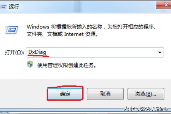 6、在运行界面中,我们输入“DxDiag”命令,然后点击“确定”按钮。