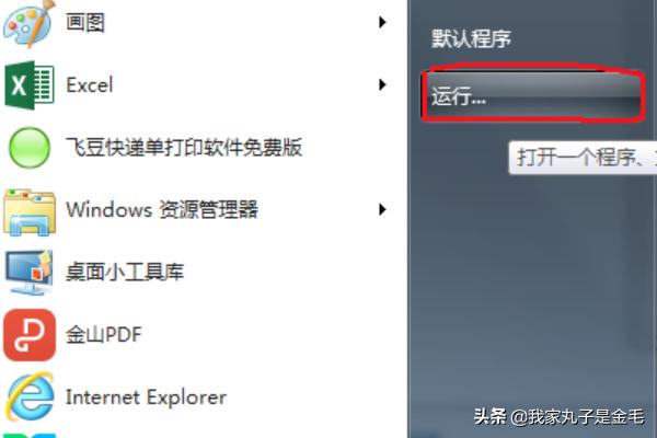 5、点击电脑桌面上的开始选项,在弹出的选项菜单中选择“运行”。
