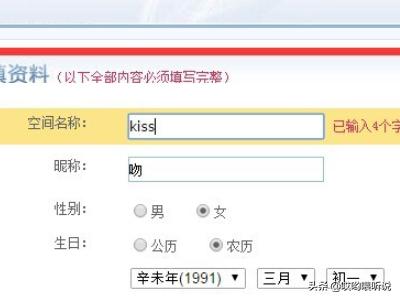 3、点击之后会跳到另一个填写qq空间资料的页面,这个页面可以设置qq空间的名称,昵称、生日等信息,根据提示填写即可。