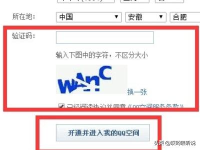 4、填写完成后,输入后面的验证码,并点击“开通并进入我的qq空间”按钮。