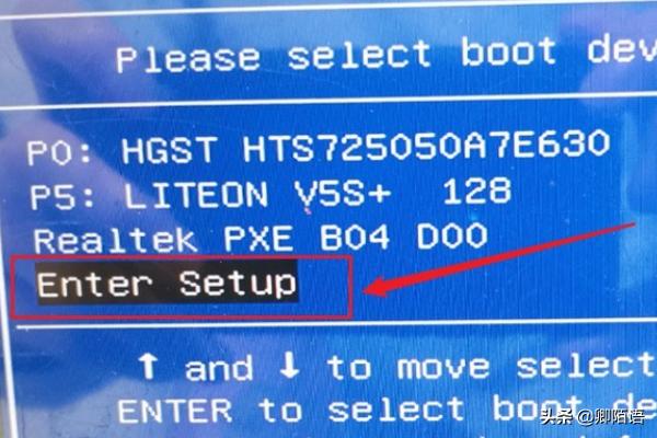 四,按下F7我们进入到开机启动项选择列表,我们选择“enter setup”回车亦可进入BIOS。