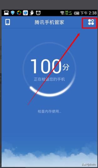 1、打开腾讯手机管家,点击右上角【4个点】的标志,来打开腾讯手机管家的工具箱。