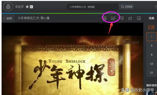 3、进入到播放界面之后,我们可以在屏幕中心的上方看到几个按钮,我们点击一下其中的第二个,有一个向下的标识。