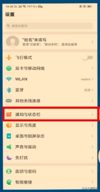 1、打开手机,选择“设置”选项,选择“通知与状态栏”。