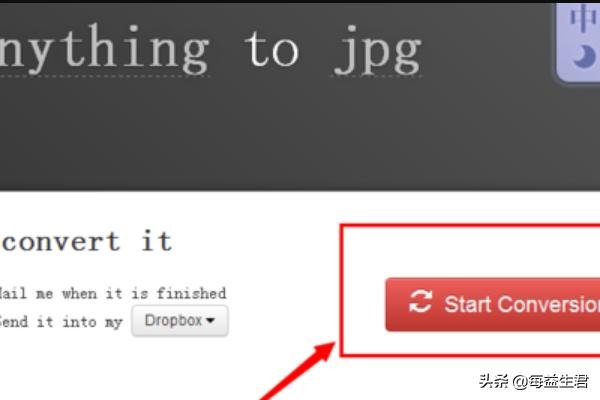 3、然后点击start conversion ,选择需要转换为的目标格式“jpg”,如图所示。