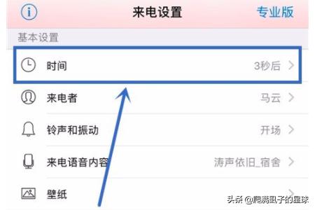 2、接着点击时间,设定好虚拟来电的时间,如下图所示。本文以三秒为例,大家可以根据自己的实际情况来设定时间。