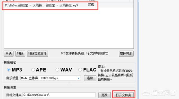 11、等转换完成,点击“打开文件夹”,就可以找到转换的歌曲了。