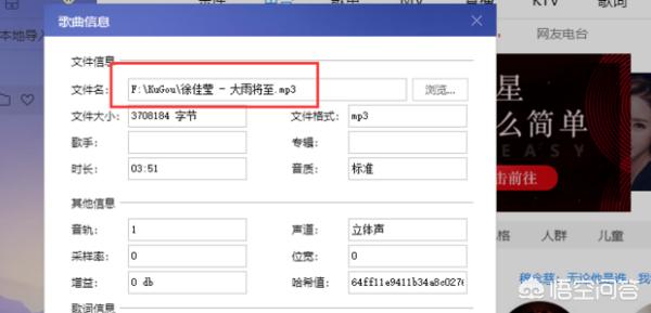3、记住“歌曲信息”中歌曲的存储路径,以便等下找到这首歌曲,然后点击下方的“关闭”,回到主页面;