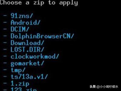 3、接下来就是开始刷入zip格式的刷机包了,按音量键选择install zip from sdcard确认,然后再按音量键选择choose zip from sdcard,然后确认,接下来按音量键移动光标找到之前放入SD卡根目录的刷机包,然后选择Yes – Install XXXXX.p-确认开始刷机。