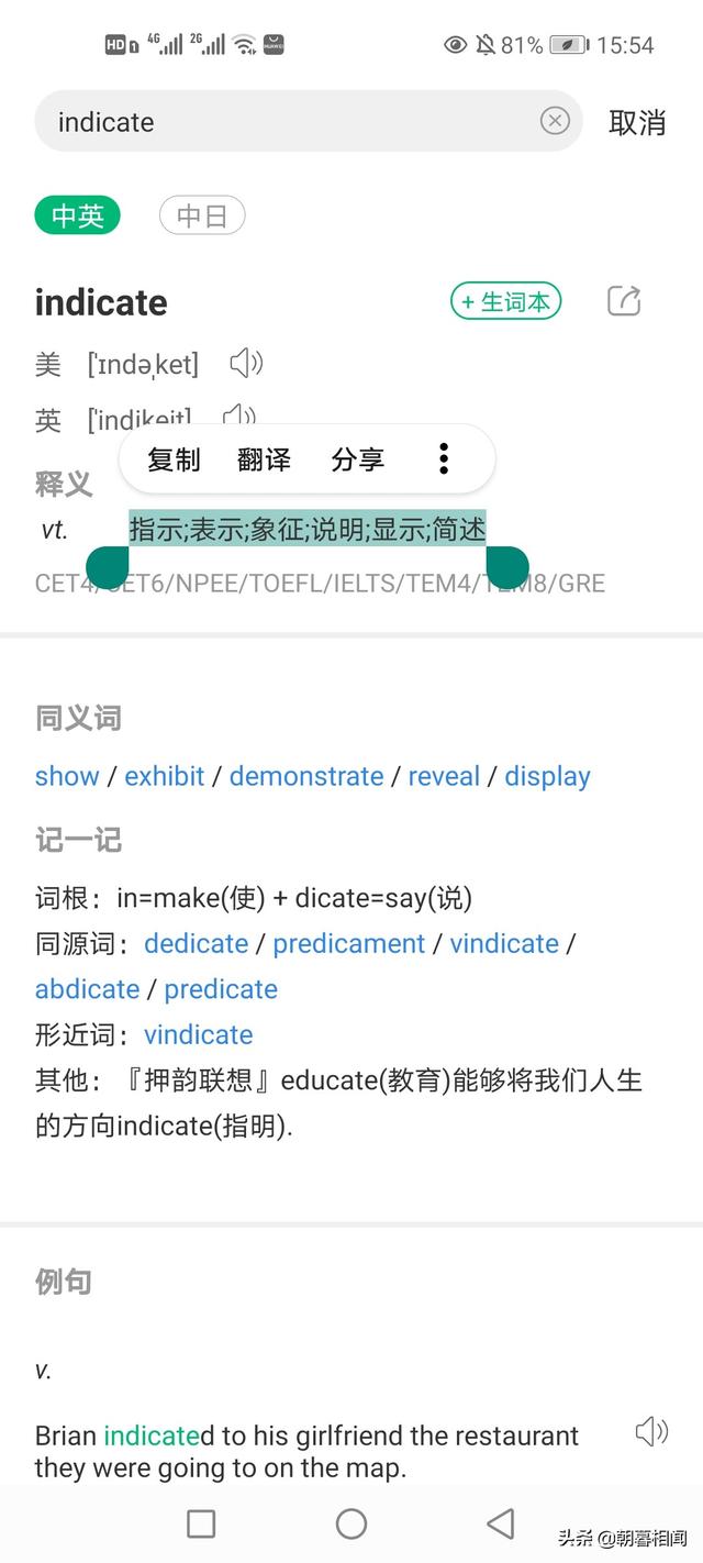 此外,indicate还可以表示某种事实或现象表明了什么问题或情况,暗示可能发生的事情,或间接提及某事。例如:The weather indicates that it will rain tomorrow.(天气表明明天会下雨。)