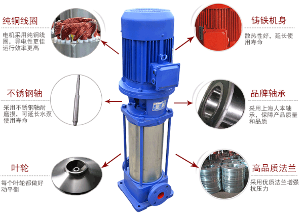 CDL立式多级离心泵是吸取了国内外先进技术而设计制造的非自吸立式多级离心泵,采用标准立式电机和快装式机械密封,更换非常方便。泵的过流部分均采用不锈钢(304\316)材料制成,可适用于轻度腐蚀性介质。水泵内部叶轮、泵壳及其主要配件采用不锈钢冲压成形,流道特别光滑,轴瓦、轴套用硬质合金,具有超强的使用实名,避免产生二次污染,可达到卫生标准级别的不锈钢多级泵。轴封采用耐磨机械密封,无泄漏。电机采用Y2外壳,进口轴承,绝缘等级F级。泵运转平稳,低噪音,整机质量可靠,外形美观,体积小,重量轻,运输安装方便,是理想的绿色、环保、节能的水泵。该产品可替代国外CR、CRN等同类产品。产品投放市场后,以其高效节能、质量可靠、使用范围广等特点。