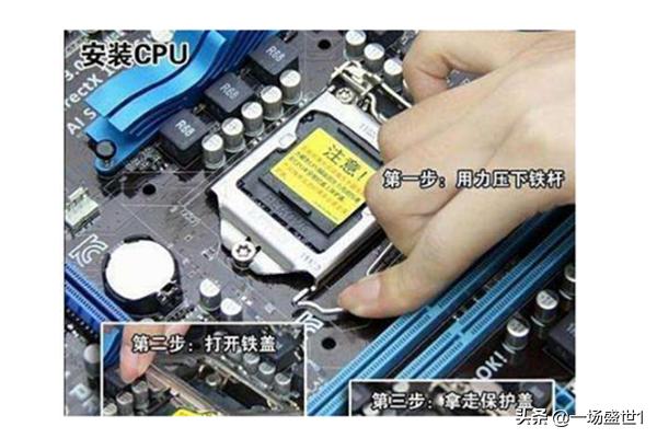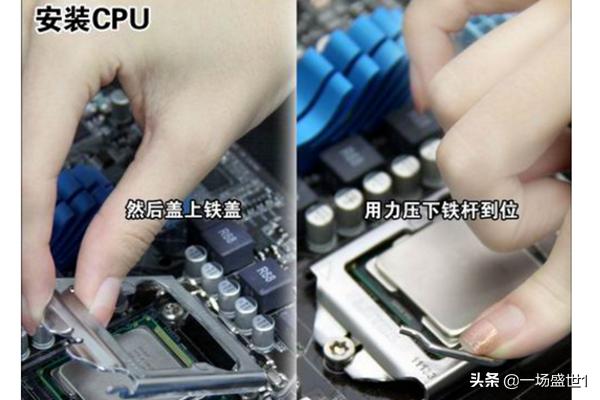 2,然后盖上铁盖,用力压下铁杆到位,CPU就安装完成。