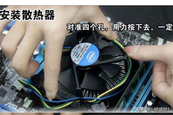 5对准主板四个空位,用力下压,即可完成一个位置的安装,重复四次即可。如果要拆卸散热器,把四个脚钉位置向上面箭头相的方向转动,然后用力拉,重复四次即可拆卸。