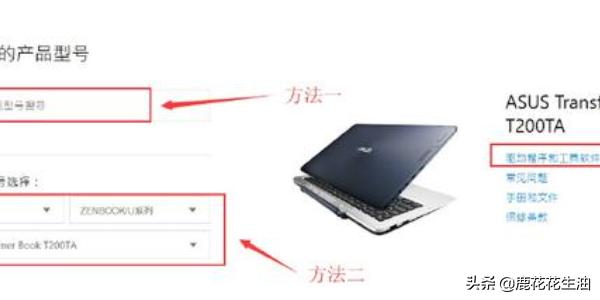 2、往下翻找到“驱动程序和手册”——“前往下载中心”。可通过方法一,输入自己电脑主板型号。或者通过方法二,选择自己电脑型号。