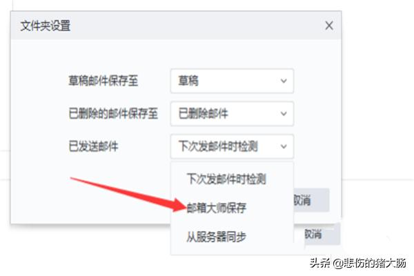 7.点击下拉框,把已发送邮件更改为邮箱大师保存。