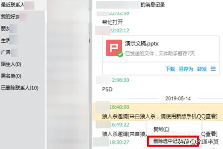 3、点击任意联系人,打开之后查看聊天记录也可以点击其中一条消息可以删除该聊天记录。