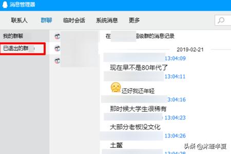 4、点击“群聊”,也可以查看曾经已经“退出的群”,滑动鼠标查看你想要聊天记录。